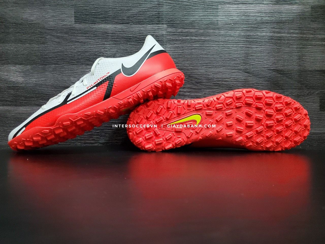 Đinh giày được làm từ cao su cao cấp có thiết kế hình chữ nhật, được phân bố đều khắp mặt đế giúp đôi giày có thể bám sân tốt hơn trên mặt sân cỏ nhân tạo.